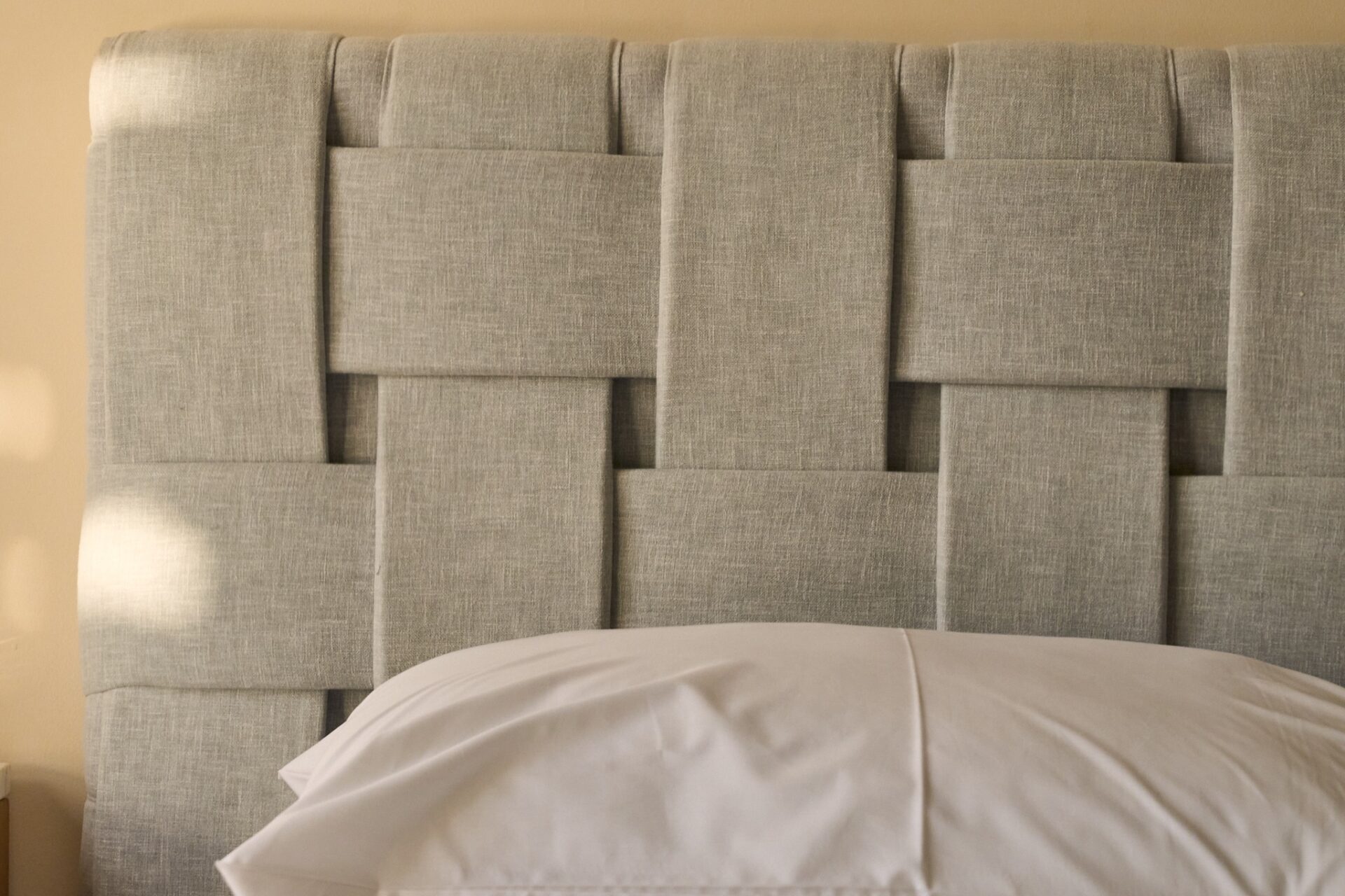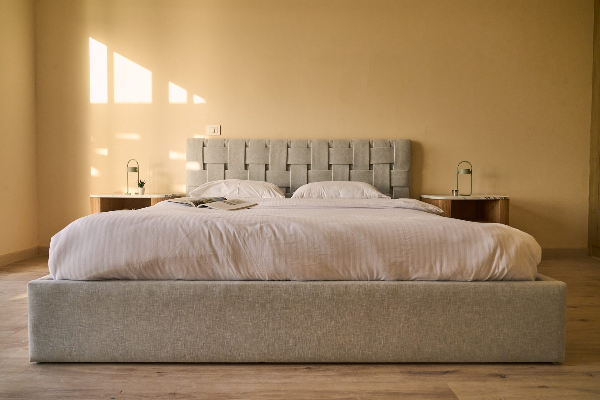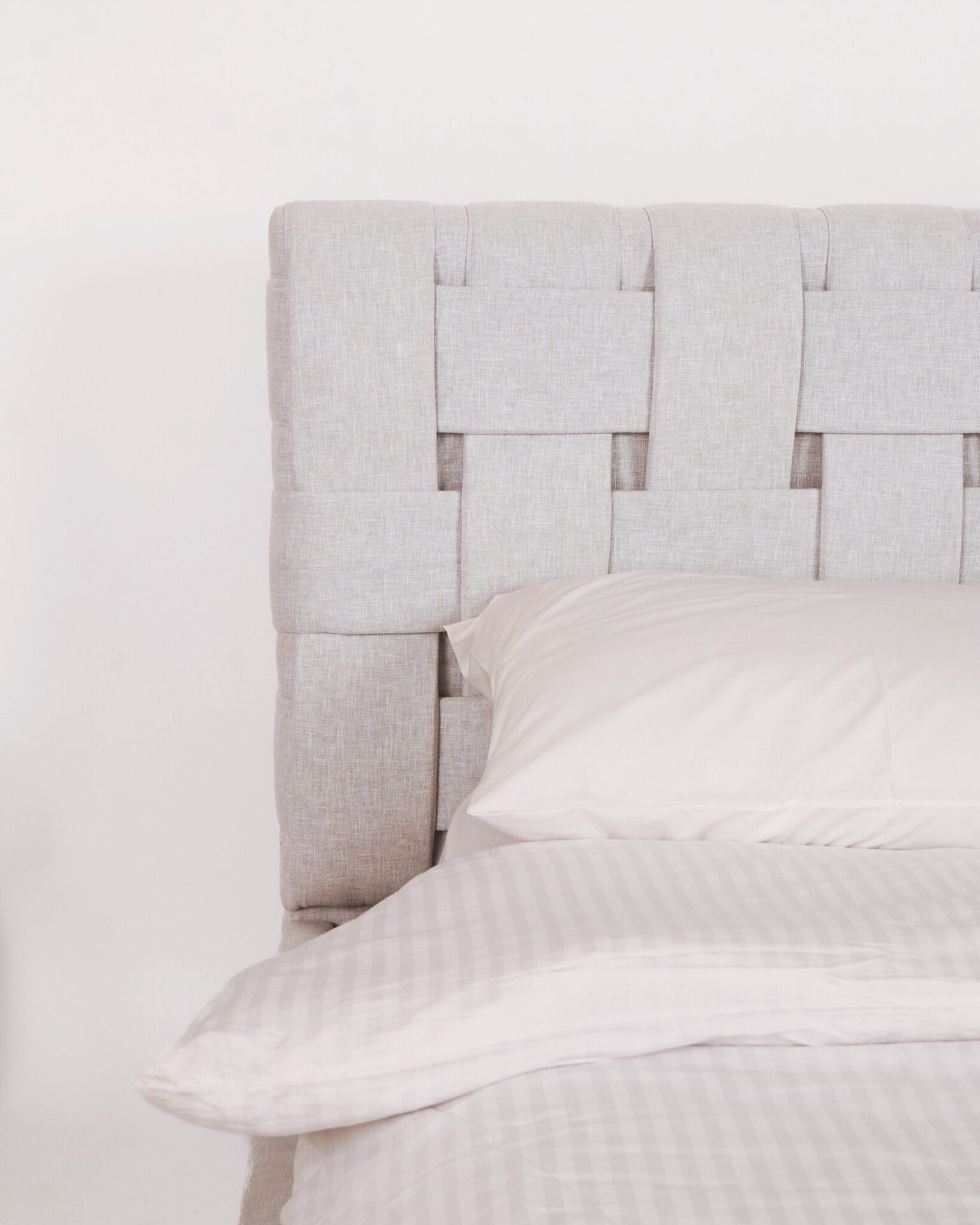 The Grid Bed is crafted from durable beech wood, ensuring longevity and stability for years to come. Its headboard features a distinctive lattice pattern, adding a unique artistic element to the overall design. This bed combines functionality with an eye-catching aesthetic, making it a compelling centerpiece for any bedroom.