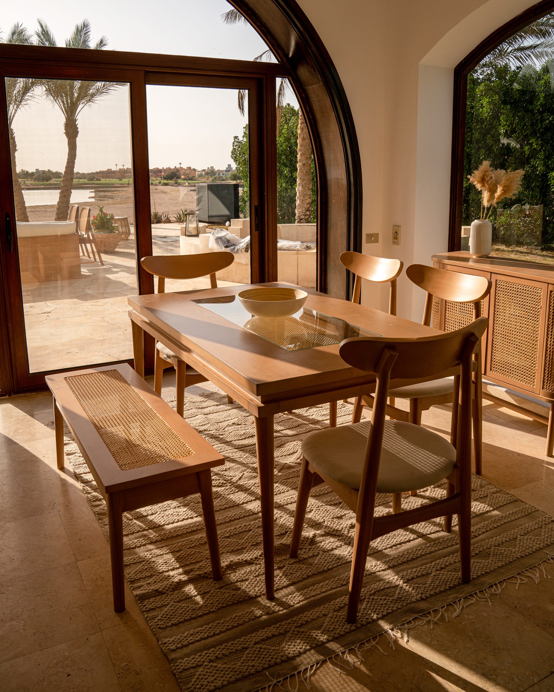 Set Includes: Dining Table + 4 Chairs + 1 Bench