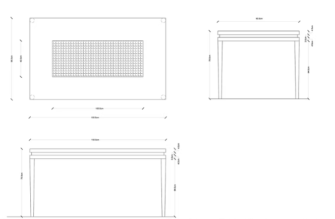 Table Dimensions: 150cm length x 90cm width x 75cm height